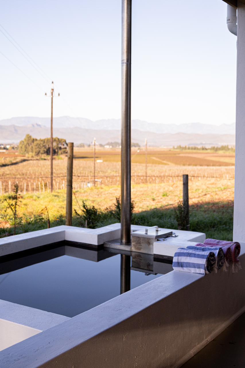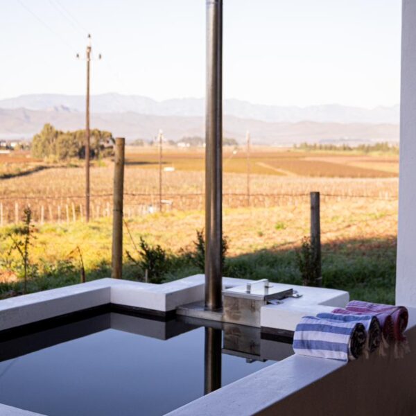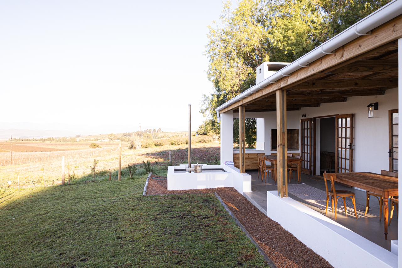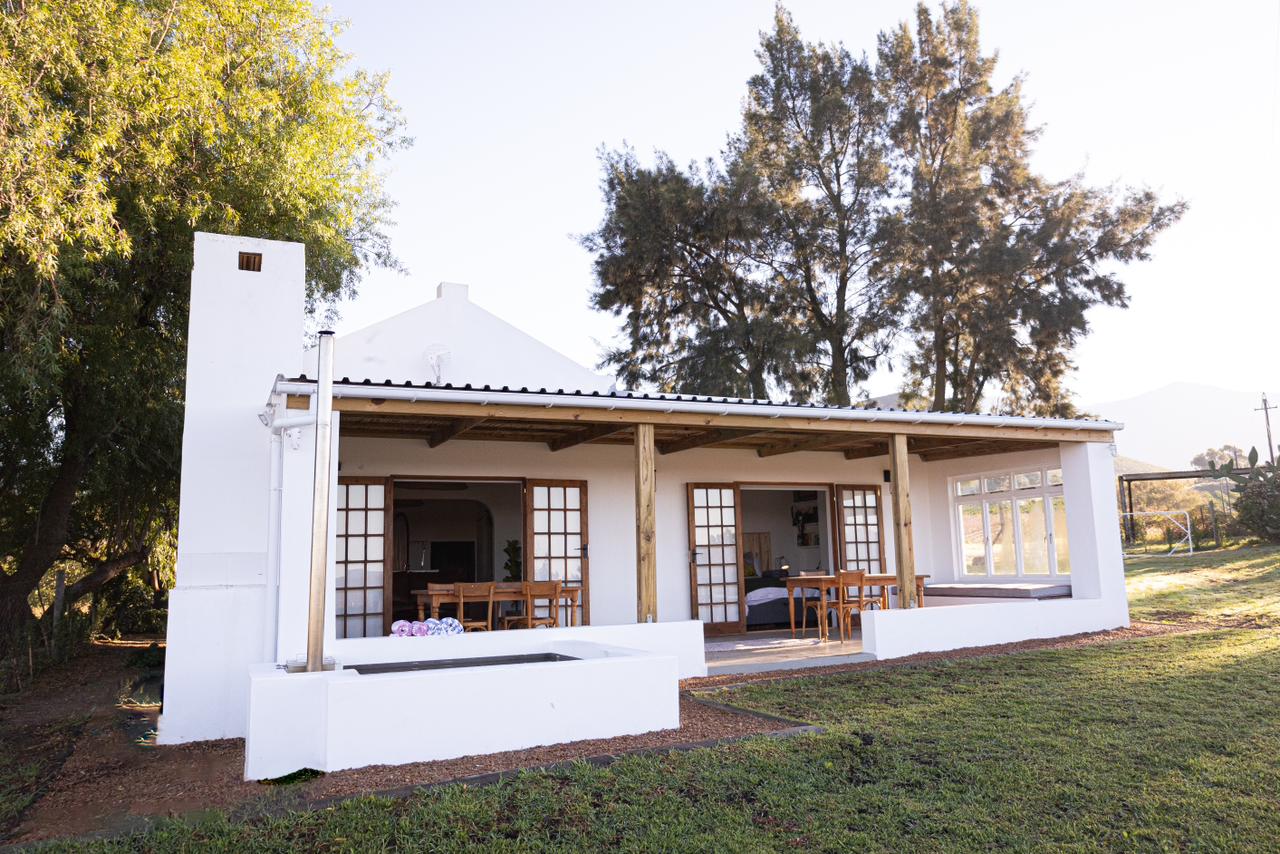 This charming solar-powered 2-bedroom self-catering cottage has 1 bathroom and an extra double sleeper couch if needed. The unit offers a well-equipped kitchenette, a lounge, an inside and outside braai/BBQ area, and a wood-fired hot tub overlooking the valley. The cottage is also the ideal base to explore the surrounding wine farms, tasting venues, organic fruit farms, and nature reserves. Cape Town International Airport is 169 km away.